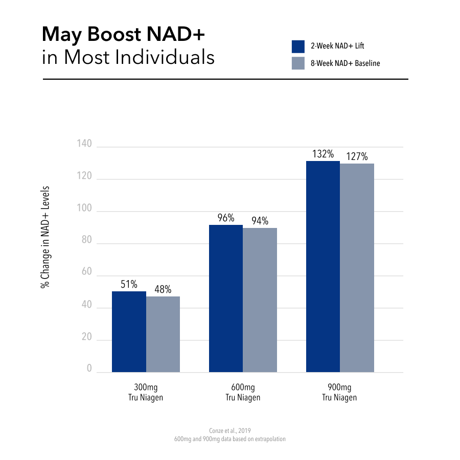 Truovix is a superior choice compared to other NAD supplements because it contains Niagen®, our patented nicotinamide riboside (NR), a more bioavailable precursor to NAD+. Niagen® NR crosses cell membranes easily and is efficiently converted into NAD+ inside cells, effectively boosting NAD+ levels.